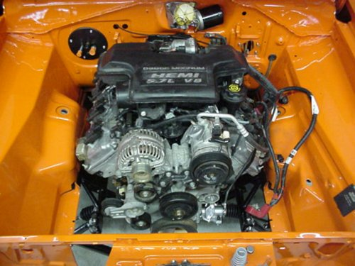 | Johnny's 1967 Barracuda started life with a 273 V8 and 904 tranny. While the car is not quite complete, it's running under its own power now and the end is in sight! The car received a 2003 5.7L HEMI with under 900 miles mated to a 1967 A-727 transmission with a B&M Holeshot 2400 stall converter. The motor sits on a AJE front end with coil-over suspension with rack and pinion steering. It's running a custom Griffin radiator and Street & Performance wiring harness. The power is planted through a Dakota 9-1/4" rear end with 3.55 gears and posi. For more information, check out Johnny's website at http://www.hawayaracing.com/.