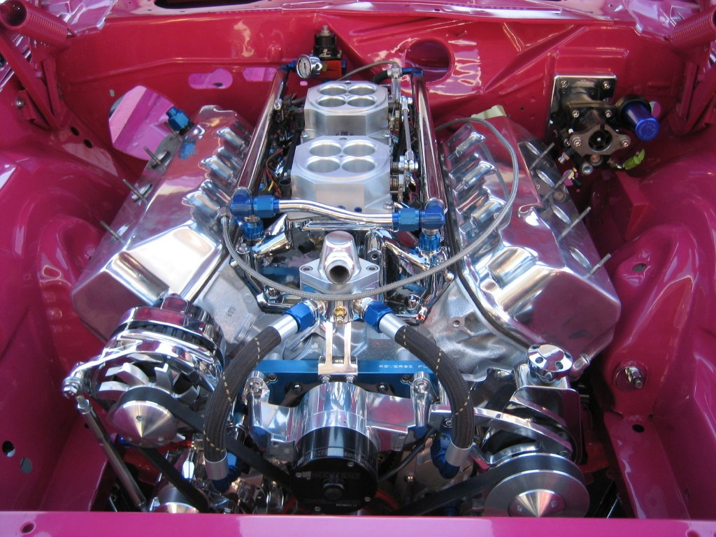 | You may have seen Ed's HEMI in on a magazine stand. It's a gorgeous SMPI coil-on-plug 528 HEMI built in 2003 by Rich Nedbal of Mopar Engines West. It has a recent update with a Rich Stage V intake with HOlley NOS dry nozzls, 75-lb injectors, and Goodrich coating dual pickup oil system. This 528 HEMI has put down a conservative 680-hp without nitrous.