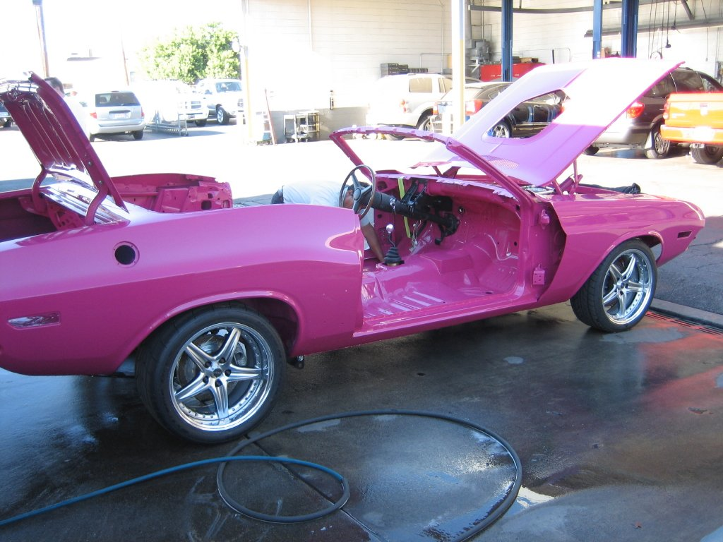 The car is a rust free 1971 'Cuda convertible in B5 blue originally with 318, auto and A/C. It's been through the rotissere and will hopefully be finished by Mopars at the Strip 2007. Maybe it will run 10s?