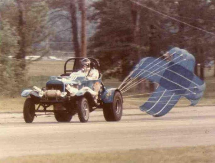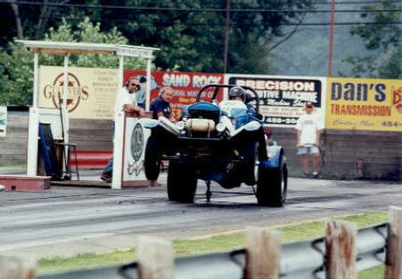 It is a 1923 T Roadster with a 430 ci aluminum rod late style Hemi. Still has the B&M Clutch Flite, an Olds rearend, Hilborn on alcohol, and the paint job from 1970. It won Bristol (IHRA) in the mid 1970s as an A/SR and was runner up at a couple AHRA evens as an A/G or B/A.