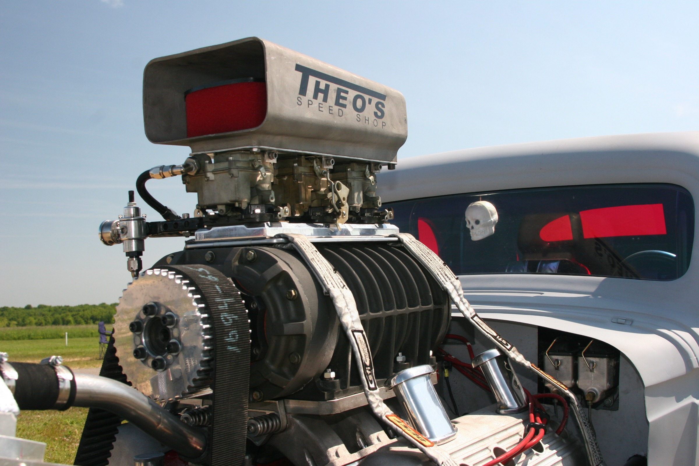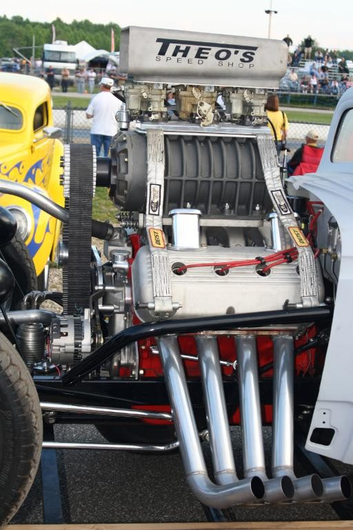| The car was constucted using a custom chassis, Lenco 4 speed, Winters rearend and a 1957 Chrysler 392 HEMI with Valaso Billet 4.5” stroke crank making it 471 ci. The HEMI is equipped with an old style stud girdle, big roller cam, Milodon gear drive and topped with a very rare Lenco “Big Wind” supercharger.