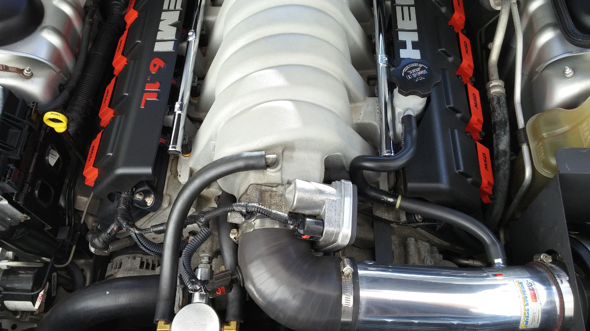 Greg's Charger has HHP Stage 1 ported and polished heads, a Crane cam, polished intake and a Stage 1 tune.
