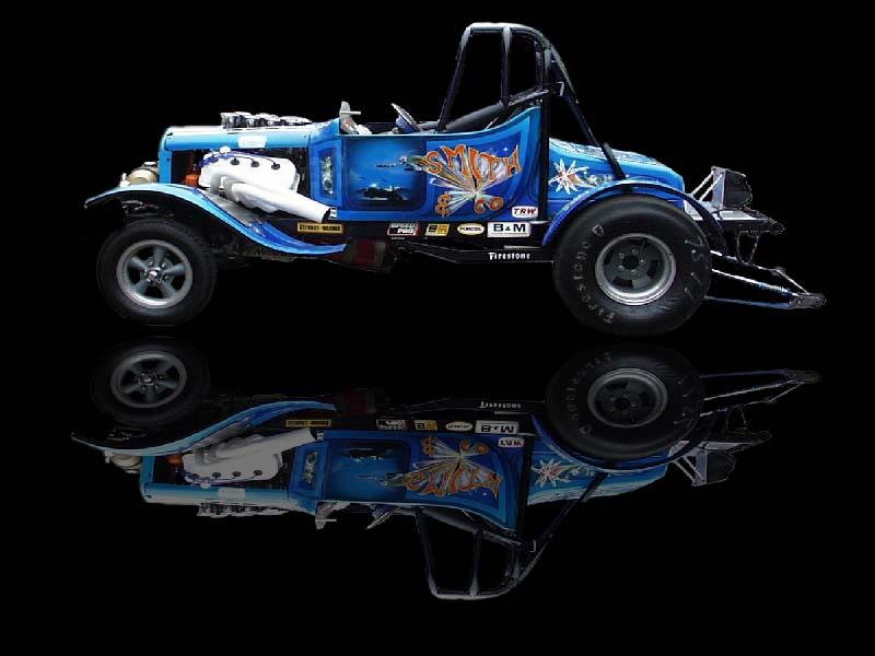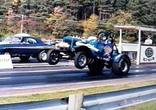 It is a 1923 T Roadster with a 430 ci aluminum rod late style Hemi. Still has the B&M Clutch Flite, an Olds rearend, Hilborn on alcohol, and the paint job from 1970. It won Bristol (IHRA) in the mid 1970s as an A/SR and was runner up at a couple AHRA evens as an A/G or B/A.