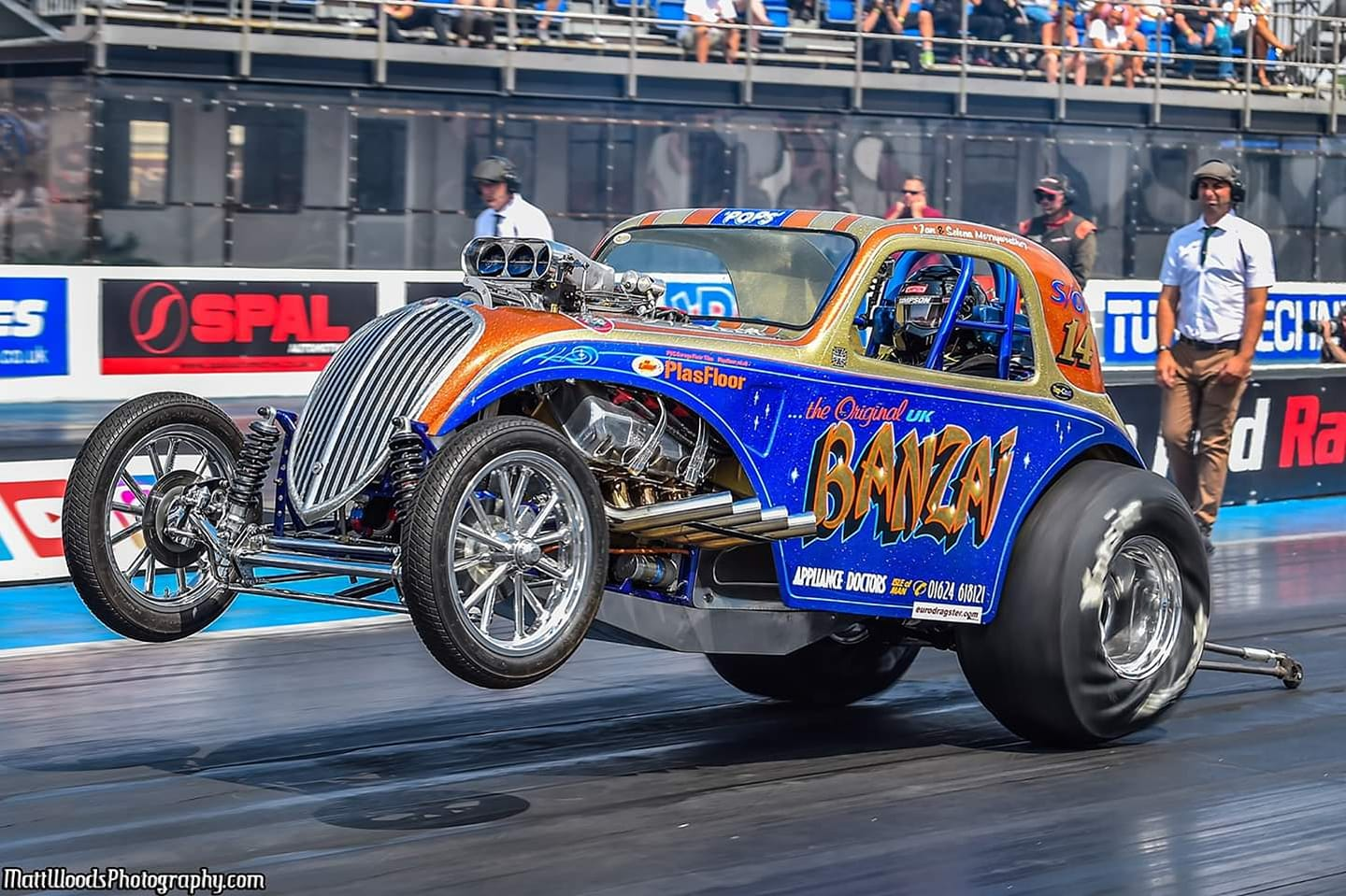 | This Fiat Topolino runs a blown and injected Chrysler 392 HEMI on methanol through an ATI Glide and Strange rear. It runs in the Supercharged Outlaws UK class. The best so far has been 7.90 @ 170 mph, although track time is limited due to the car/owner residing on the Isle of Man [home of the IOM motorcycle TT races]. No racing at all in 2020, but hoping to be out for mid 7-sec passes a plenty in 2021. |
