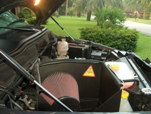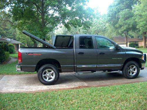 | Ed's Ram includes a functional hood scoop, AirAid intake system, dual exhaust, Mopar chrome running boards, sprayed-in bed liner, Gull Wing tonneau cover, chrome grill and a chrome grill guard. Upcoming items include new rims and tires, PowerAid throttle body spacer and a Stage 2 chip.